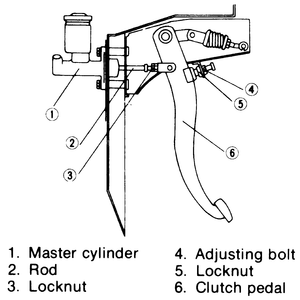 Fig. 1: Clutch pedal height adjustment — hydraulic type