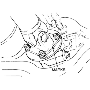 | Fig. 1: Matchmark the driveshaft flanges before removing