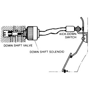 | Fig. 1: Kickdown switch and downshift solenoid adjustment
