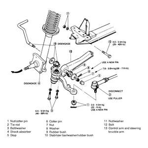 Disconnect the stabilizer bar and the tension rod from the control arm.