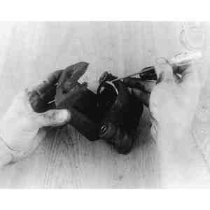 NOTE: If the piston is frozen and cannot be removed from the caliper, tap lightly around it, while air pressure is being applied.