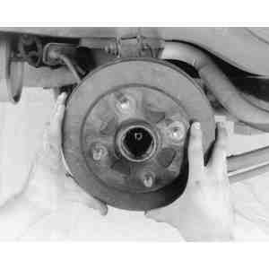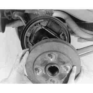 NOTE: If the drum will not come off easily, screw the drum securing bolts into the two tapped holes in the drum. Tighten the bolts evenly in order to force the drum away from the flange.