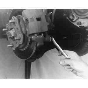 disc. Suspend the caliper by a piece of wire or twine to prevent putting tension