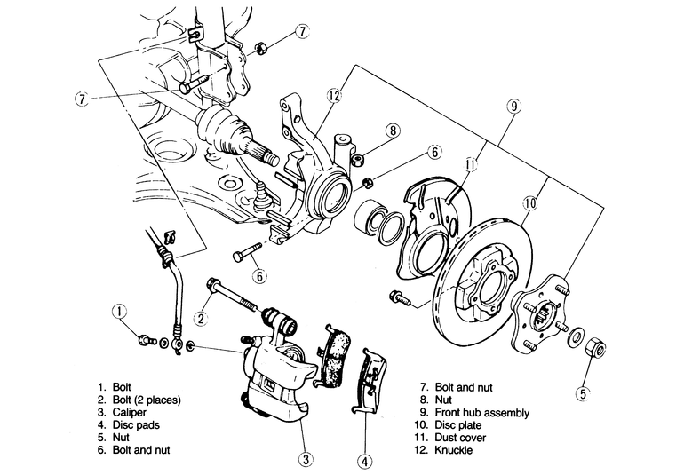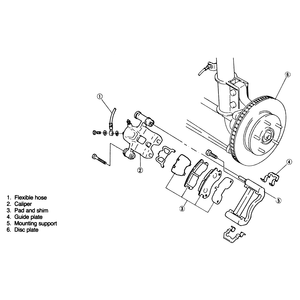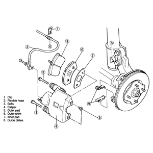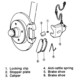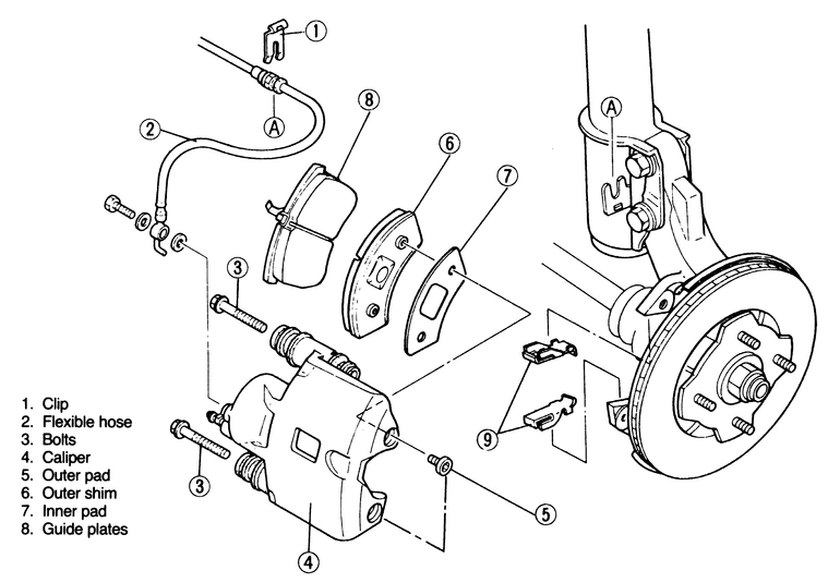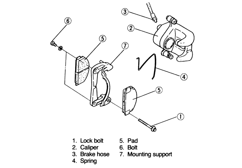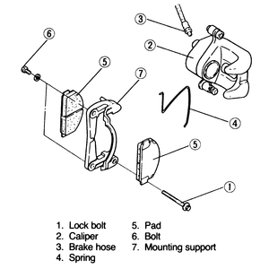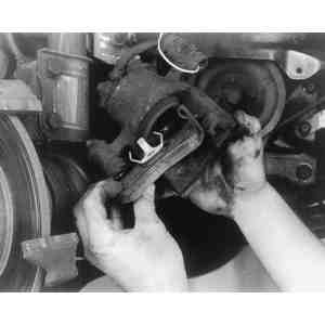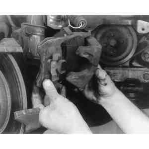 can be lifted off. Hang the caliper on a wire; do not allow it to hang by