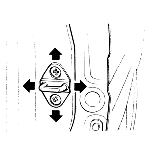 NOTE: The door latch striker can be adjusted laterally and vertically as well as fore and aft. The striker should not be adjusted to correct door sag.