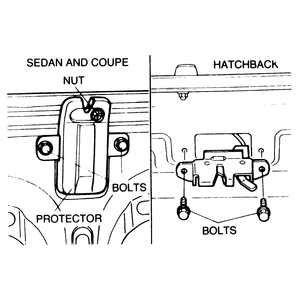 | Fig. 2: Trunk and hatchback lock striker mounting