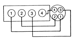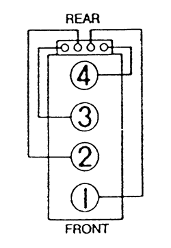 | Fig. 6: Miata 1.6L (B6E) and 1.8L (BPD) Firing Order: 1-3-4-2 Distributorless Ignition |