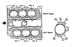 | Fig. 5: 1993 MX3, 1.8L (K8), 1995-97 626/MX6 2.5L (KL), and 1995-97 Millenia, 2.5L (KLD) EngineEngine Firing Order: 1-2-3-4-5-6Distributor Rotation: Counterclockwise |