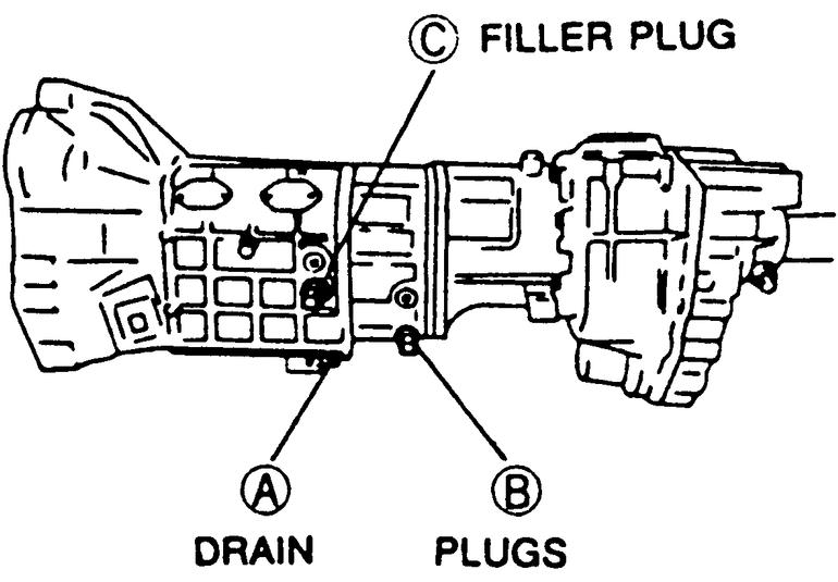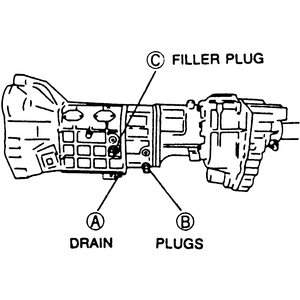 note that the 5-speed transmissions have two filler plugs and two drain plugs.