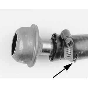 Fig. 2: A hose clamp that is too tight can cause older hoses to separate and tear on either side of the clamp