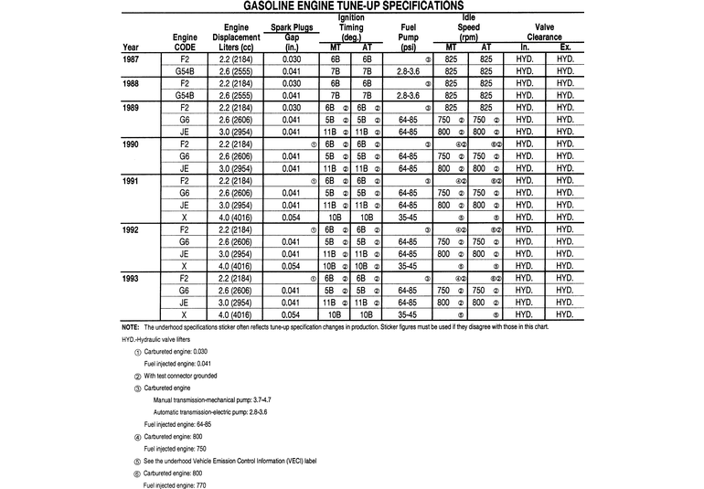 the 2.6L engine, or 20–70°for the 2.2L engine.