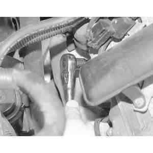 a ratchet, unscrew the spark plug from the cylinder head . . .