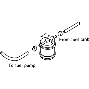 Clean all dirt and/or grease from the fuel filter fittings. The fuel filter uses a "hairpin'' clip retainer. Spread the two hairpin clip legs about 1⁄8 in. (3mm) each to disengage it from the fitting, then pull the clip outward. Use finger pressure only; do not use any tools. Push the quick connect fittings onto the filter ends. Mazda recommends that the retaining clips be replaced whenever removed. The fuel tubes used on these fuel systems are manufactured in 5/16 in. and 3⁄8 in. diameters. Each fuel tube takes a different size hairpin clip, so keep this in mind when purchasing new clips. A click will be heard when the hairpin clip snaps into its proper position. Pull on the lines with moderate pressure to ensure proper connection. Start the engine and check for fuel leaks. If the inertia switch (reset switch) was disconnected to relieve the fuel system pressure, cycle the ignition switch from the OFF to ON position several times to re-charge the fuel system before attempting to start the engine.