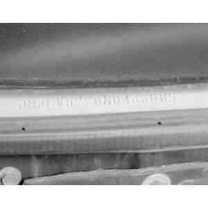 The Vehicle Identification Number (VIN) code is stamped on a plate located on the driver's side windshield pillar, which is visible through the glass. The VIN code is also stamped into the engine compartment cowl panel. The Pick-up has a chassis number which is stamped on the front of the right frame member, visible from the engine compartment.