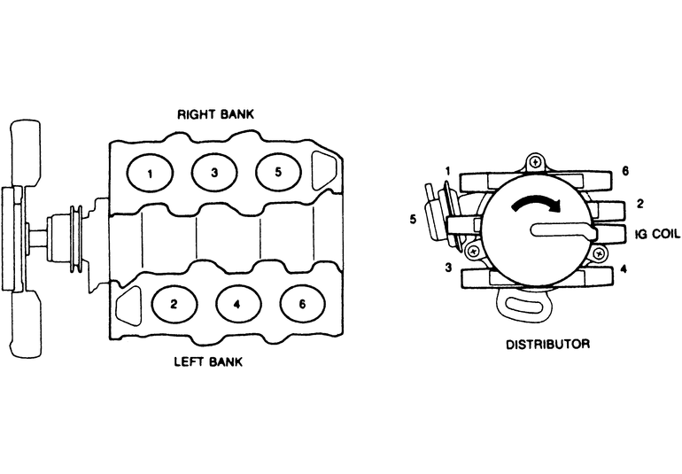 | Fig. 3: 3.0L Engine Engine Firing Order: 1-2-3-4-5-6 Distributor Rotation: Clockwise |