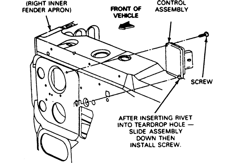 on the fender apron. Push the module into position and secure it with the