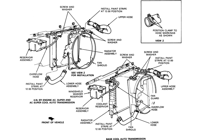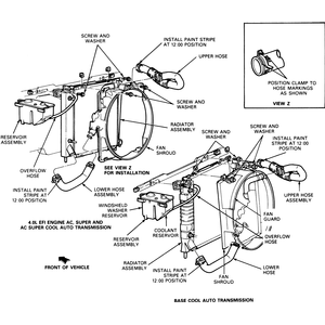 | Fig. 11: Radiator assembly removal/installation — automatic transmission |