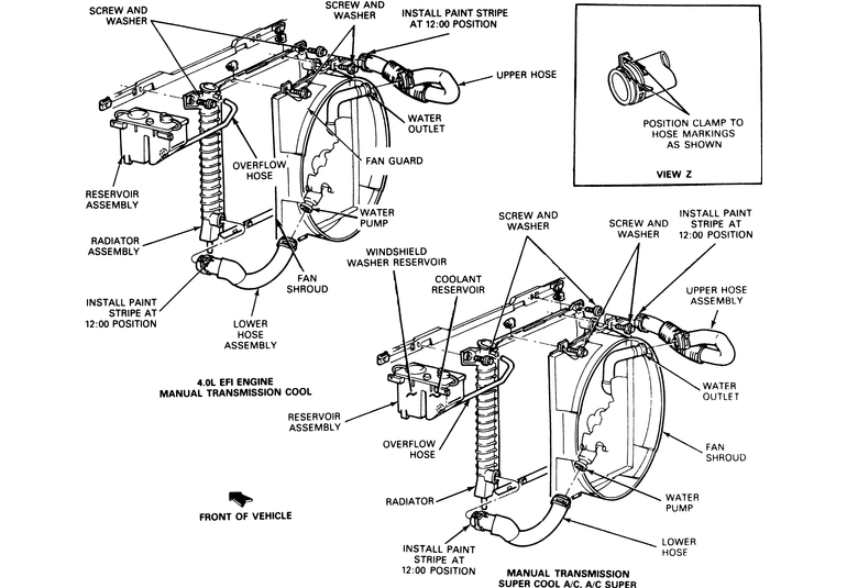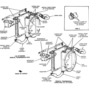 | Fig. 12: Radiator assembly removal/installation — manual transmission |
