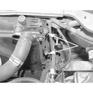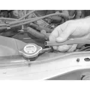 | Fig. 4: Disconnect the rubber radiator-to-overflow tank
