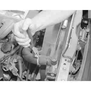 the upper radiator hose clamp and move the clamp away from the radiator,