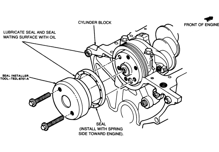 - Oil the lips of the seal and install the housing on the rear of the engine