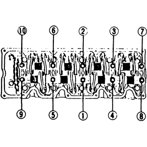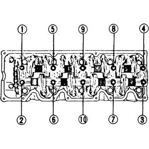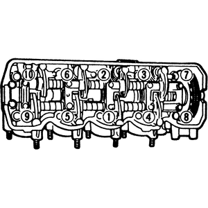 | Fig. 7: Rocker arm/shaft assembly mounting bolt tightening sequence |