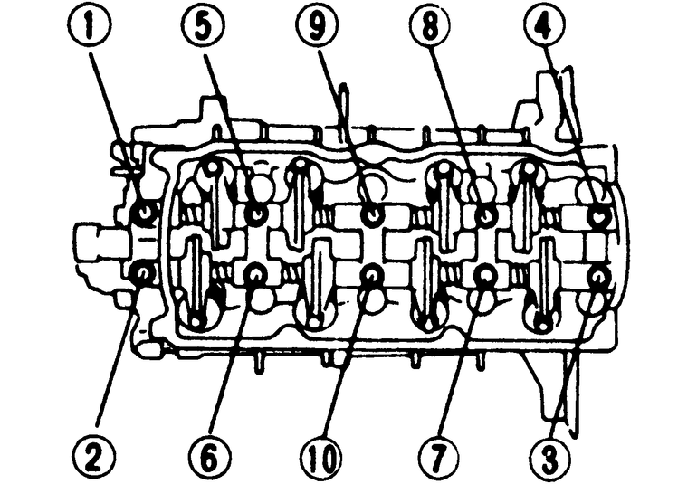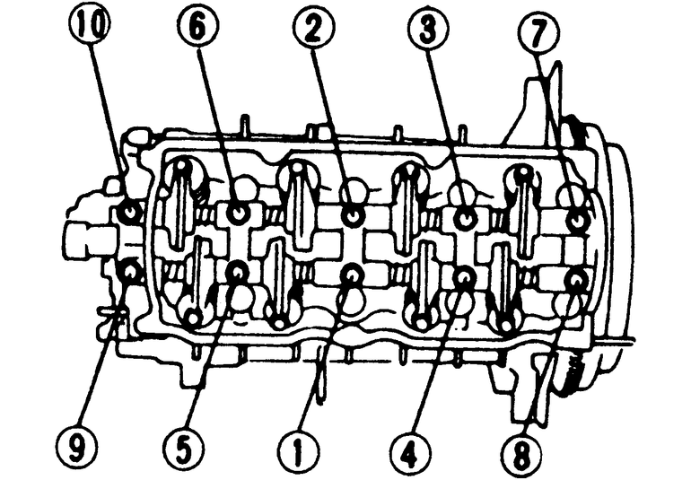 | Fig. 2: Rocker arm/shaft assembly mounting bolt tightening sequence |