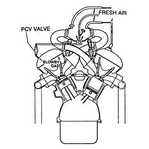 Ventilating air is routed into the rocker cover from the air cleaner. The air is then moved to the oil separator and from the separator to the PCV valve. The PCV valve is operated by differences in air pressure between the intake manifold and the rocker cover.