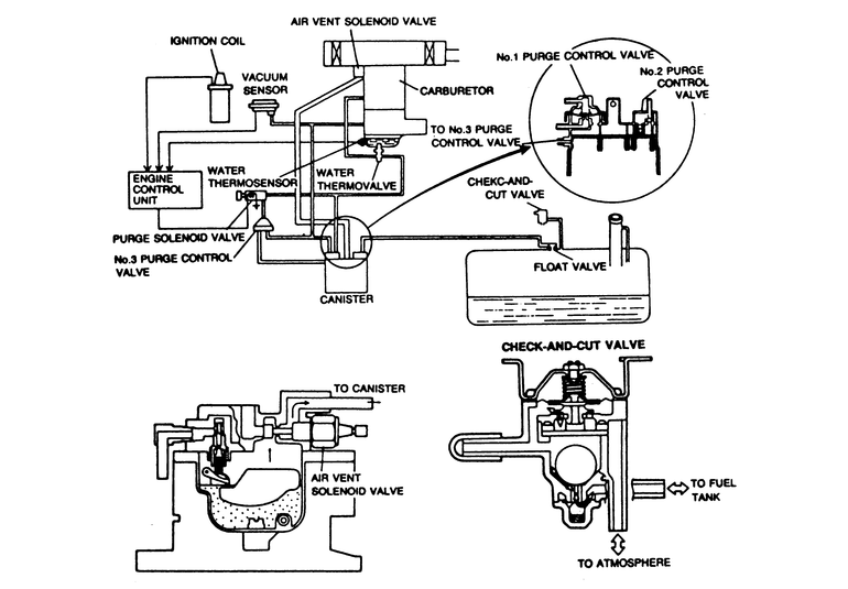 check valve), and the No. 1 purge control valve, which opens the fuel vapor
