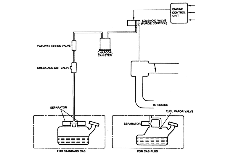 The EEC system consists of a fuel separator, a fuel vapor valve, a check-and-cut