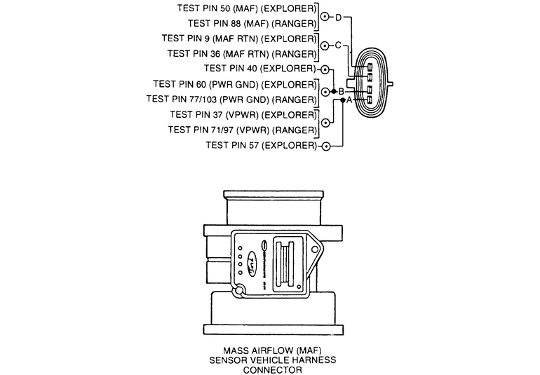 NOTE: Testing of the volume air flow sensor also includes testing of the integral intake air temperature sensor.