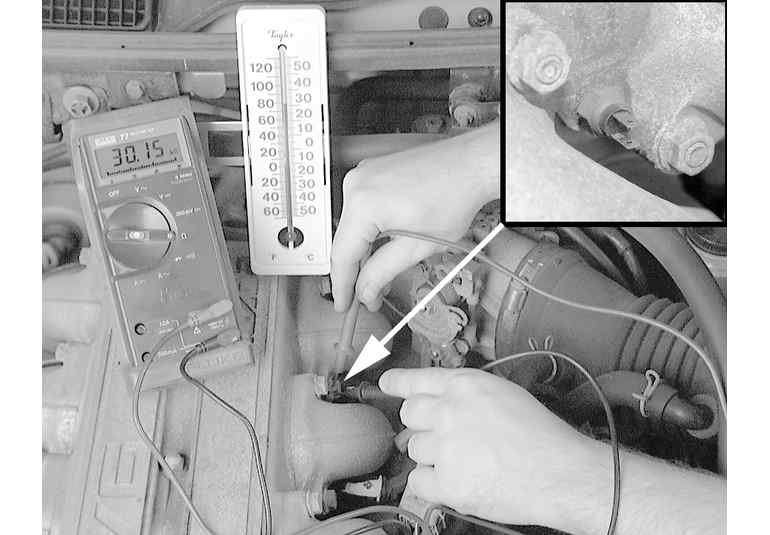 | Fig. 7: Checking the resistance of the intake air temp sensor |