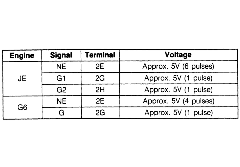 | Fig. 3: Output signal specifications chart (JE — 3.0L / G6 — 2.6L) |
