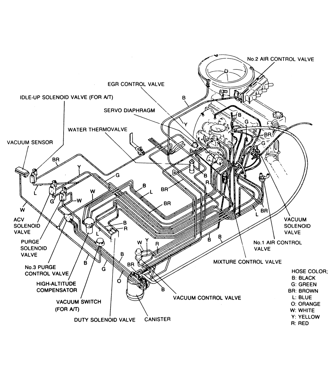 Fig. 2: Vacuum hose routing for the B Series Pickup models equipped with the 2.6L engine |