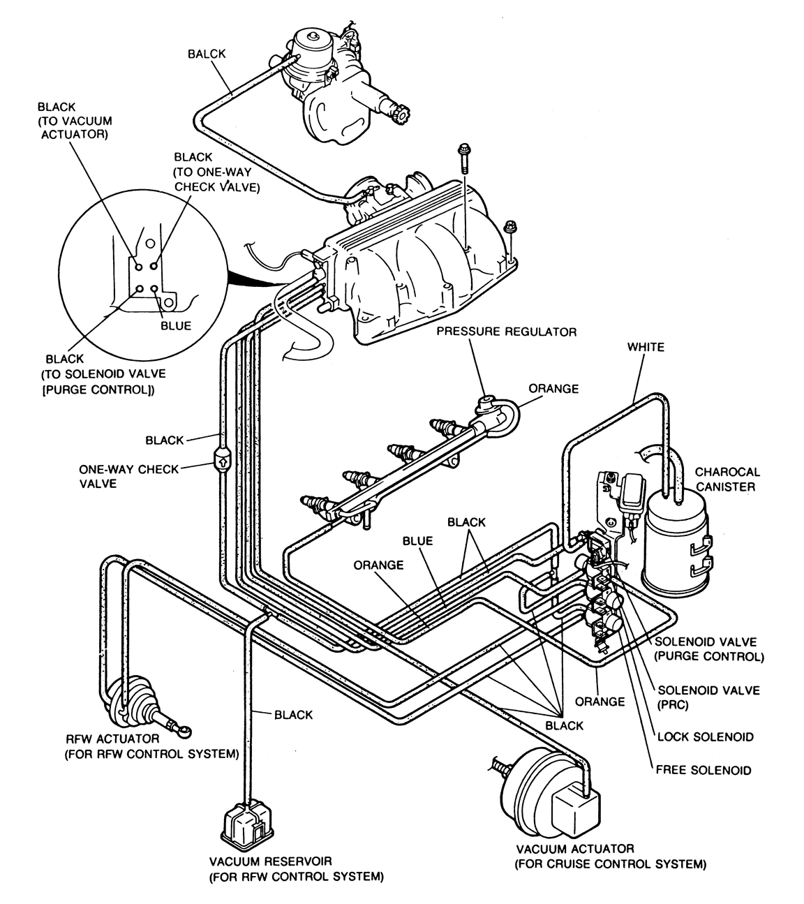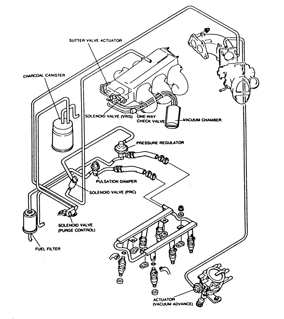 Fig. 3: Vacuum hose routing for the MPV equipped with the 2.6L engine |