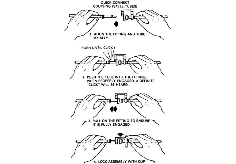 Inspect the retaining clip, fitting end and connector. Replace the clip