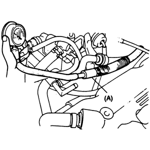 | Fig. 1: Connect a fuel pressure gauge to the main fuel hose (A) |