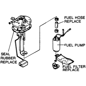 NOTE: The fuel pump is located inside the fuel tank, attached to the tank sending unit assembly.