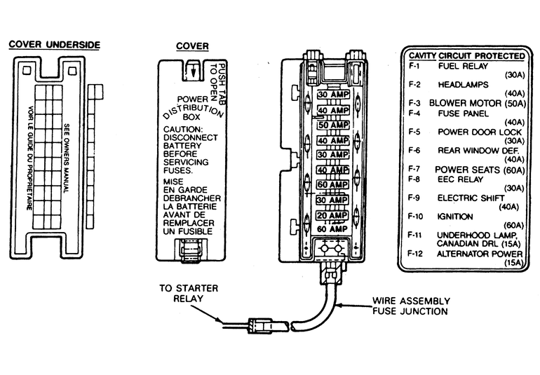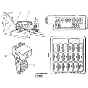 | Fig. 7: Underhood power distribution box and identification chart for the 1992–93 MPV |