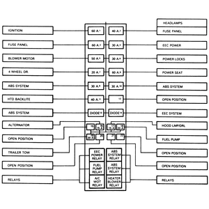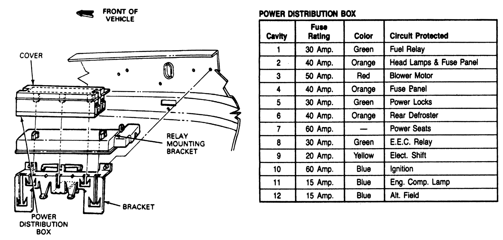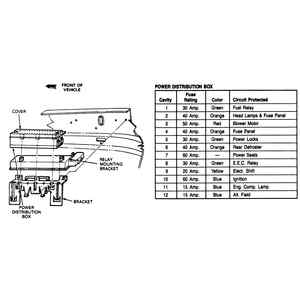 | Fig. 4: Underhood power distribution box and identification chart for the 1993 Navajo |