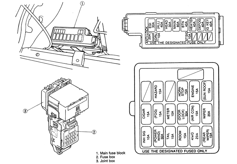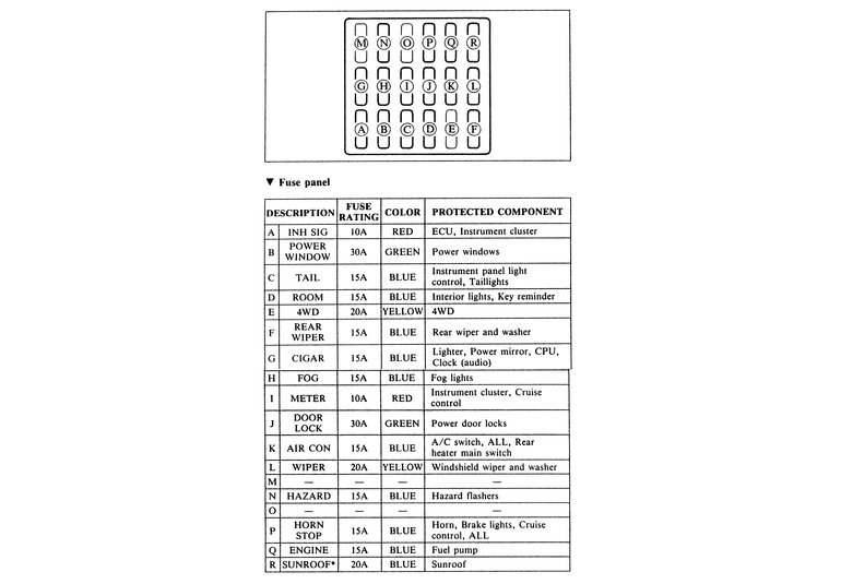 | Fig. 3: Fuse panel and identification chart for the 1993 Navajo |