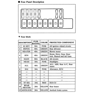 | Fig. 5: Fuse panel/power distribution box locations and fuse identifications for the 1989–91 MPV |