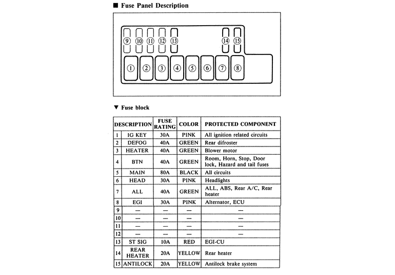 | Fig. 6: Fuse panel and identification chart for the 1992–93 MPV |