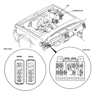 | Fig. 2: Underhood power distribution box and identification chart for the 1991–92 Navajo |
