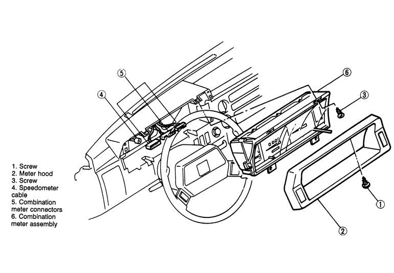 NOTE: If there is not sufficient access to disengage the speedometer cable from the speedometer, it may be necessary to remove the speedometer cable at the transmission and pull cable through cowl, to allow room to reach the speedometer quick disconnect.