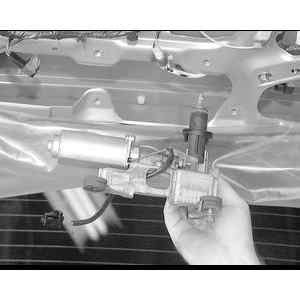 | Fig. 6: Remove the rear wiper motor assembly from the