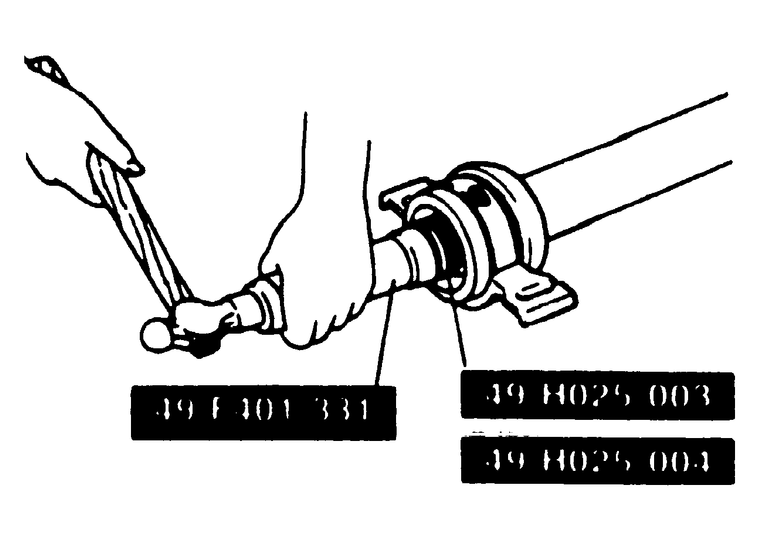 | Fig. 7: Install the center bearing assembly onto the driveshaft |