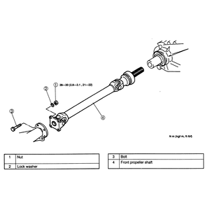 | Fig. 1: Exploded view of the front driveshaft and double cardan type U-joint — 4WD Navajo |