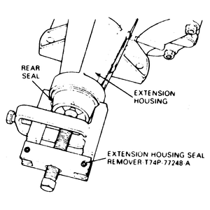 Place a suitable drain pan beneath the extension housing. Clean the area