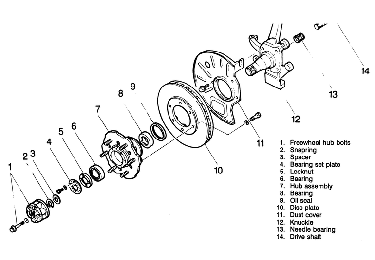 Adjust the wheel bearing if necessary. Install the manual locking hub assembly